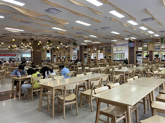 進(jìn)入杏園一樓食堂,但見(jiàn)原木色桌椅及鏤空式書(shū)架設(shè)計(jì),干凈、暖色調(diào)的就餐環(huán)境讓人渾身舒暢,胃口大開(kāi)。