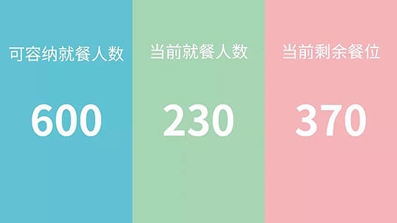它通過(guò)AI攝像頭記錄各個(gè)區(qū)域(餐廳)的進(jìn)出人數(shù),并顯示在各個(gè)智能顯示屏及小程序端,以便實(shí)時(shí)查看。