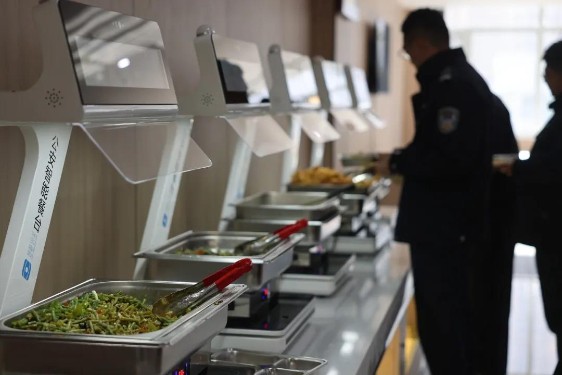 公安AI健康餐廳,通過(guò)AI稱重結(jié)算臺(tái),培養(yǎng)警員按需取餐,避免多拿,助力光盤(pán)行動(dòng)。
