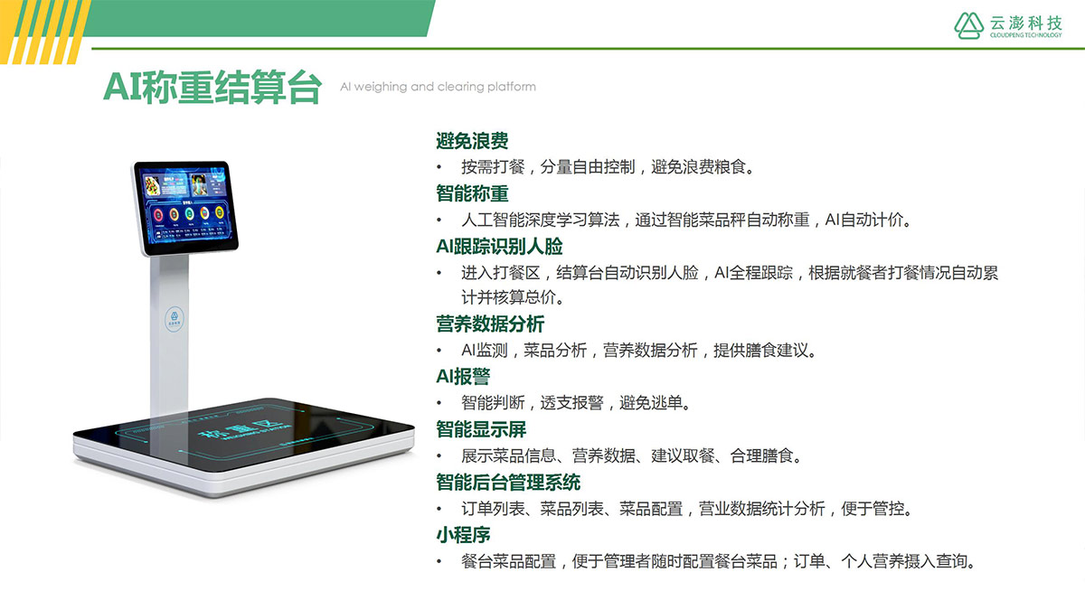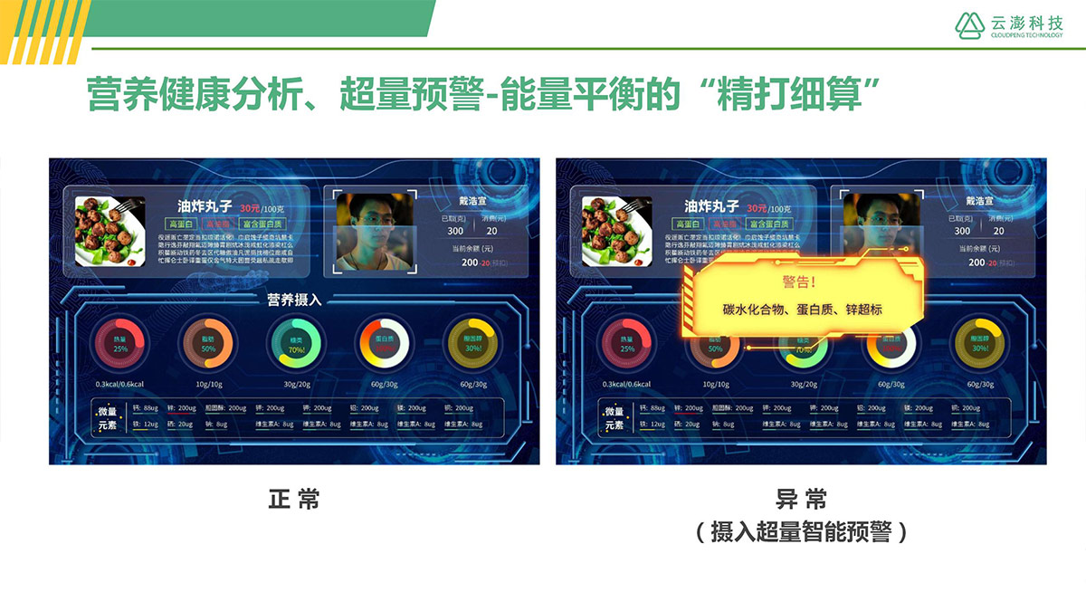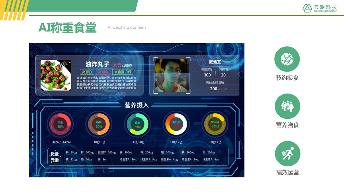關(guān)注個(gè)人營養(yǎng)飲食.減少食堂糧食浪費(fèi)●打造AI健康食堂